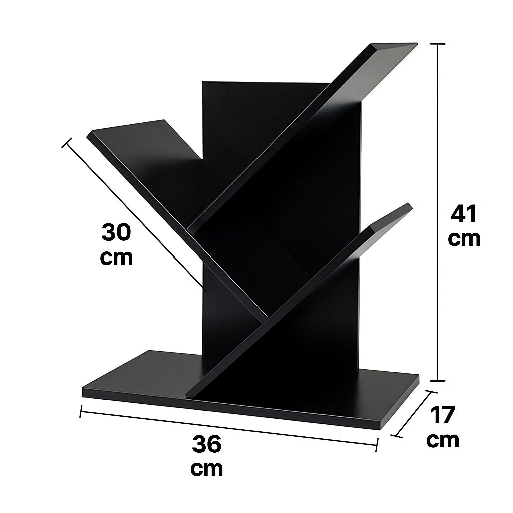 Conception en « V » minimaliste et tendance.Espace optimisé pour livres, magazines et déco.